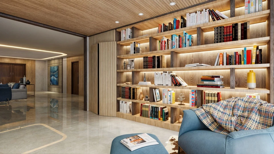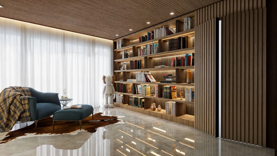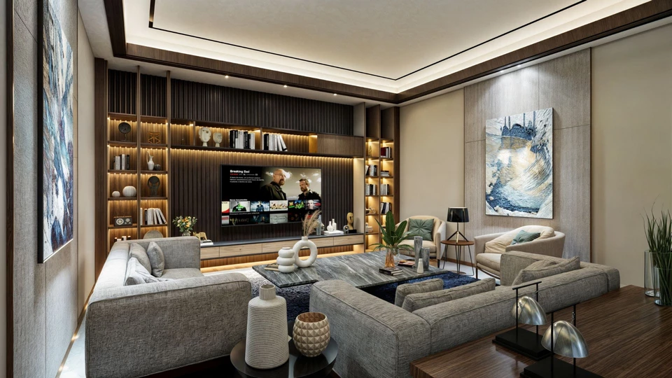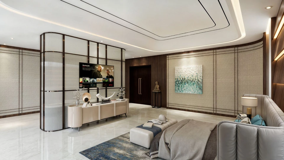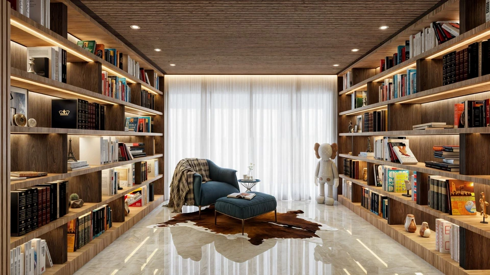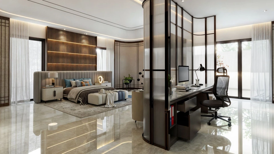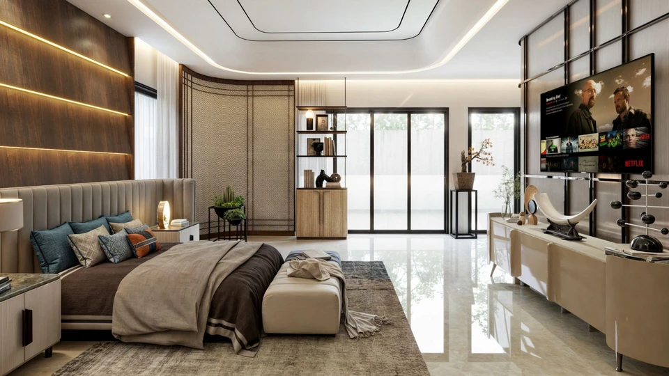 interior design prioritizes simplicity, functionality, and clean aesthetics. Its key characteristics include sharp lines, a neutral color palette such as white, gray, and black, and a combination of materials like wood, glass, metal, and concrete. Natural lighting is maximized through large openings, while artificial lighting often incorporates concealed lights or LEDs to create a warm and elegant ambiance.